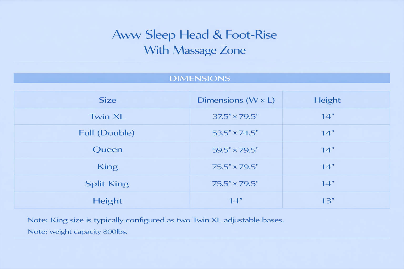 Comfortable. Supportive. Designed for better nights and brighter mornings. Paired with the Aww Sleep Head/ Foot with massage Adjustable Base, you can easily customize your position by raising your head/feet for improved relaxation, better circulation, and enhanced comfort while reading, watching TV, or sleeping.