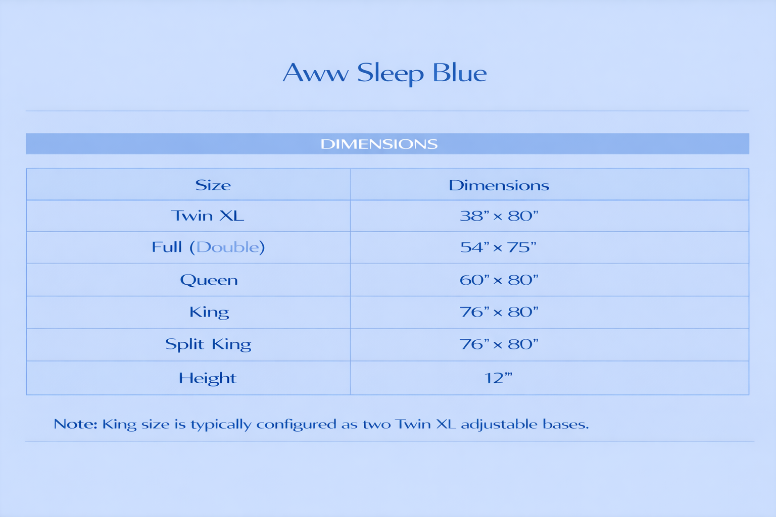 Aww Sleep Blue Mattress + Head/foot with Massage Adjustable Base Better Bundle