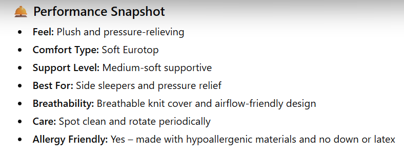 Aww Sleep Blue Soft Eurotop Mattress is designed to deliver plush comfort with balanced, everyday support. Featuring a soft Eurotop surface, this mattress gently cradles the body to relieve pressure at key areas like the shoulders, hips, and lower back—creating a cozy, cloud-like feel without sacrificing stability.