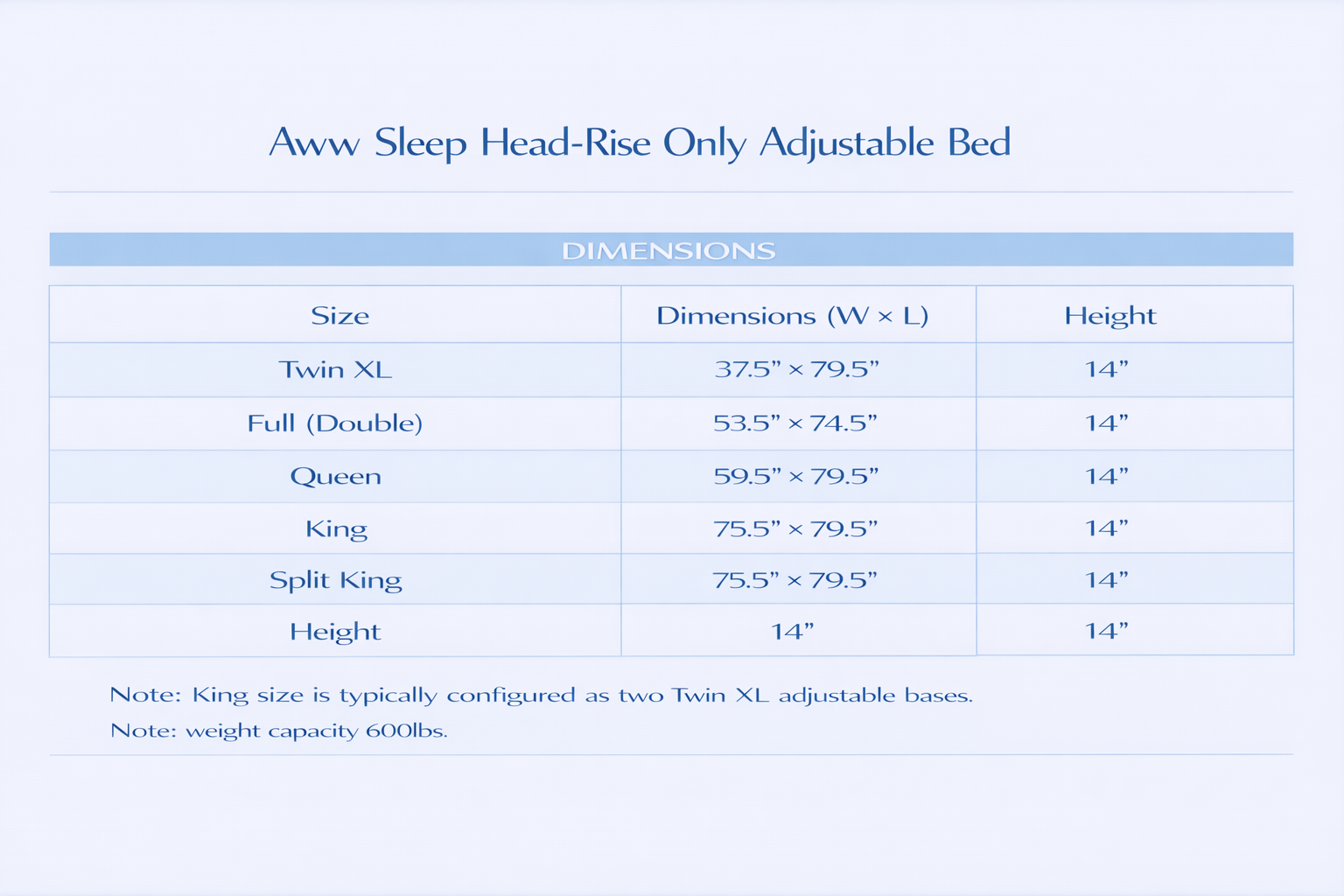 The Aww Sleep Adjustable Base offers independent adjustment for the head sections.