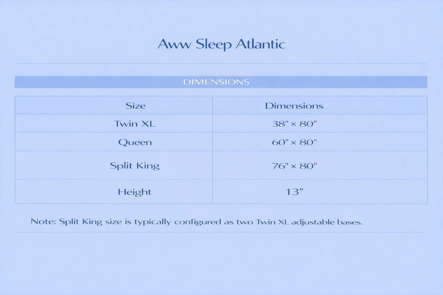 These sizes work well for guest rooms, master bedrooms, and adjustable bed setups.