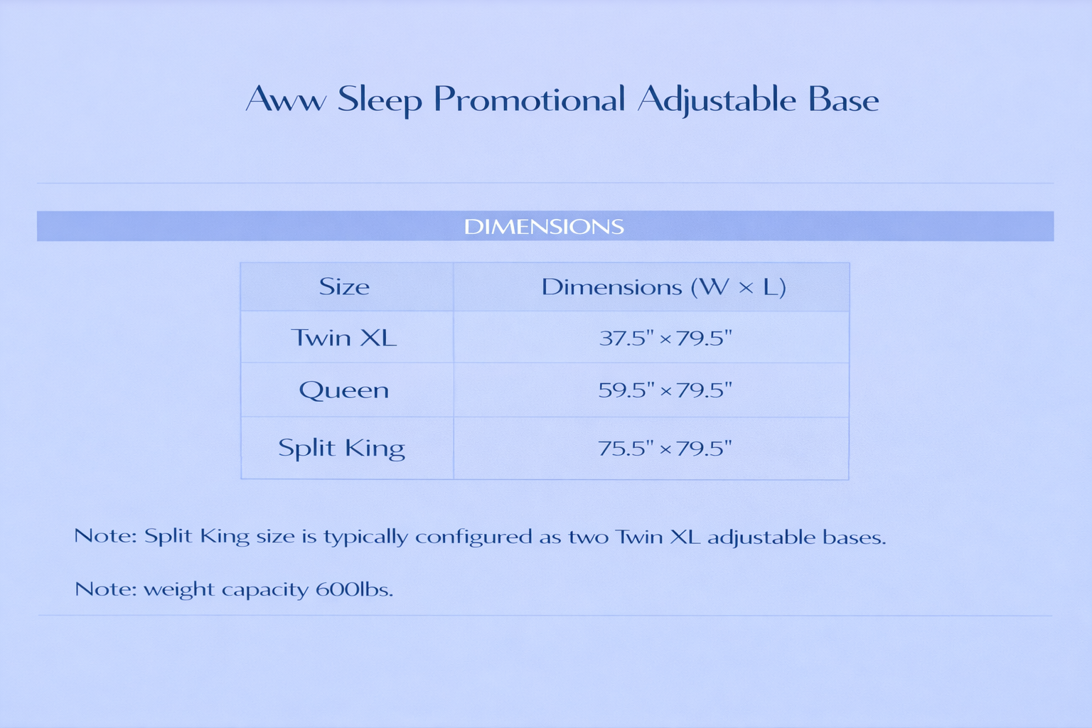 The Aww Sleep Adjustable Base offers independent adjustment for the head sections.