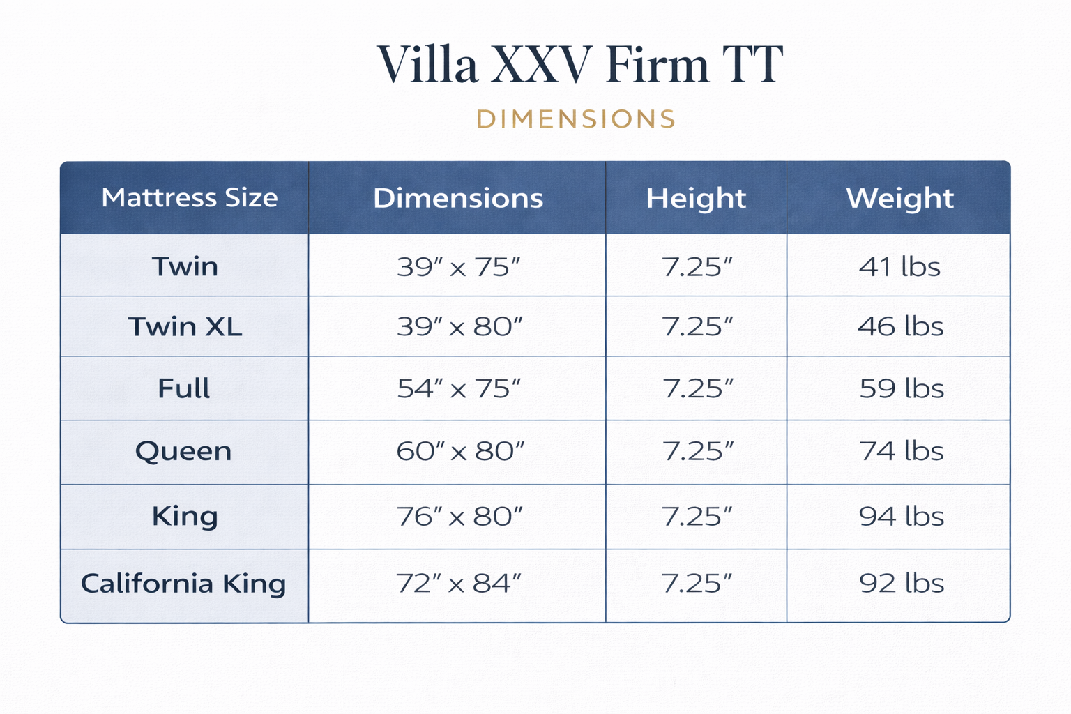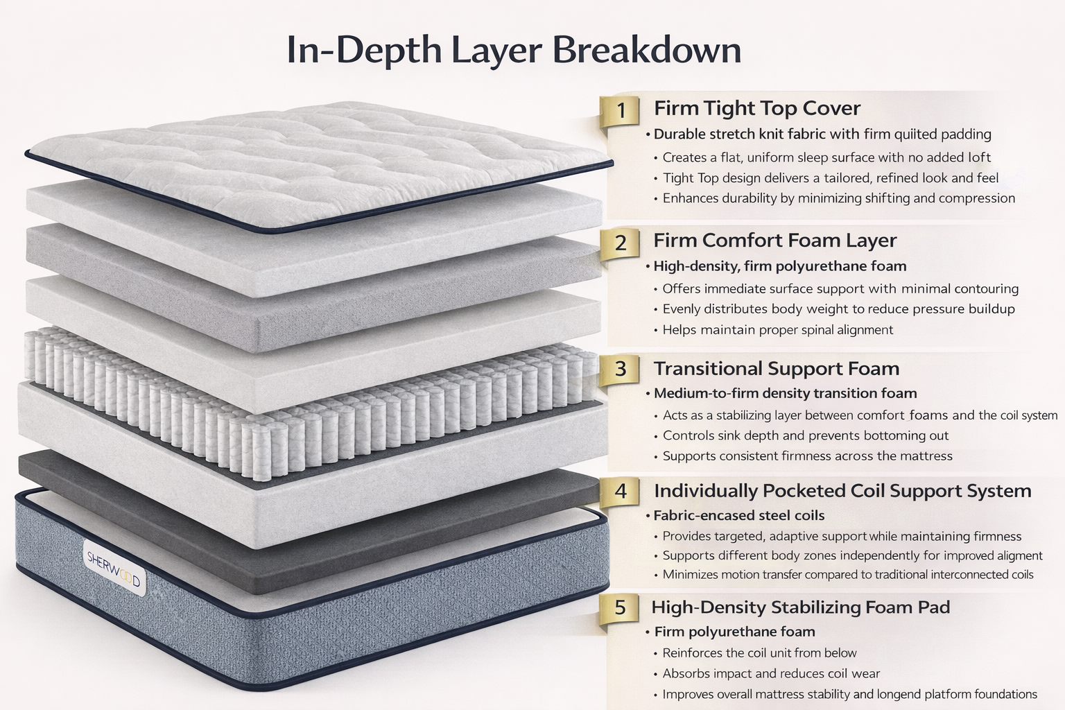 The Sherwood Bedding Villa XXV Firm Tight Top Mattress is meticulously constructed using premium materials, layered with intention to deliver enduring support, refined comfort, and exceptional durability.